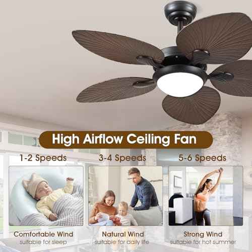Create a refreshing tropical atmosphere with the Wiviniya 44-Inch Tropical Palm Leaf Ceiling Fan. Designed to blend natural beauty with modern functionality, this ceiling fan is perfect for both indoor and outdoor spaces like patios, porches, living rooms, and more.