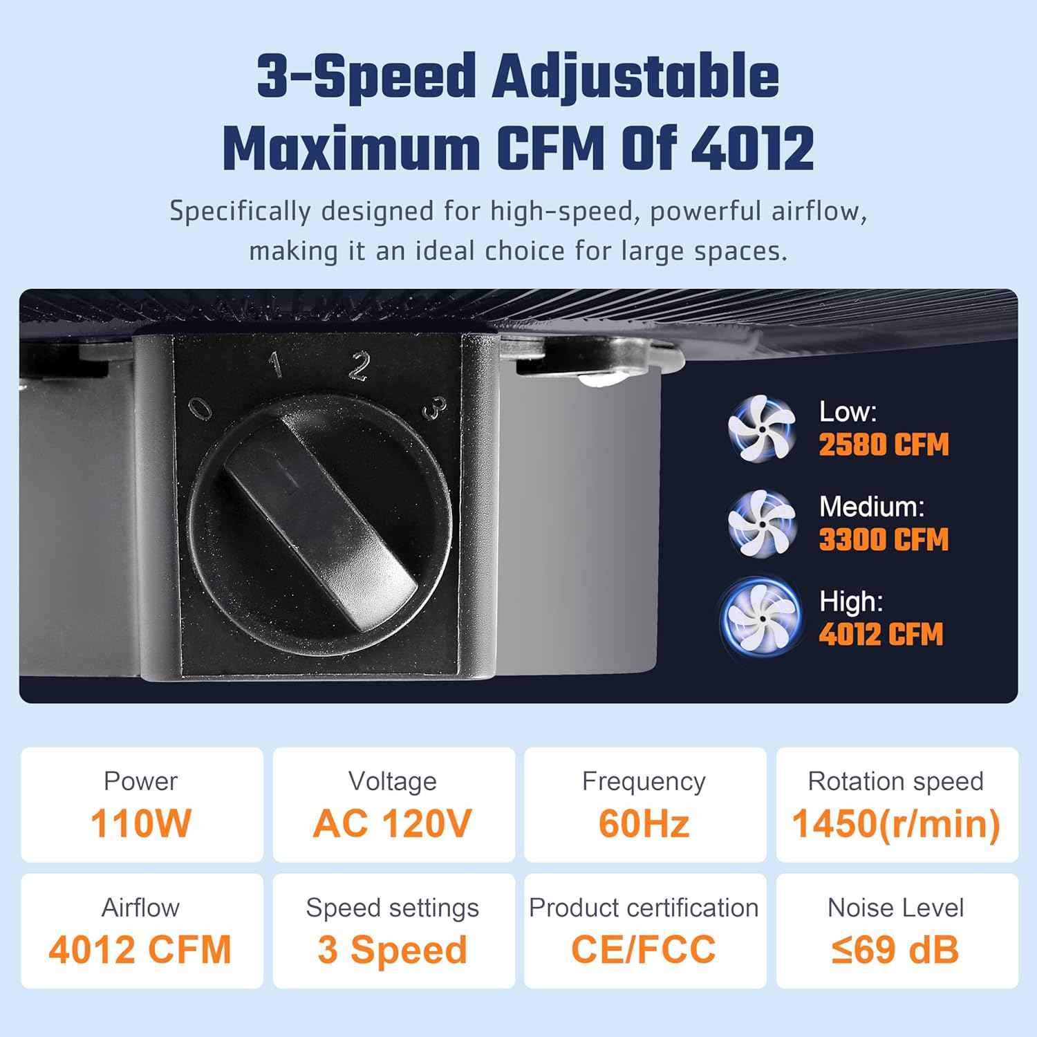 ✅ High Velocity Airflow: Generates an impressive range of 2580–4000 CFM for efficient ventilation and cooling