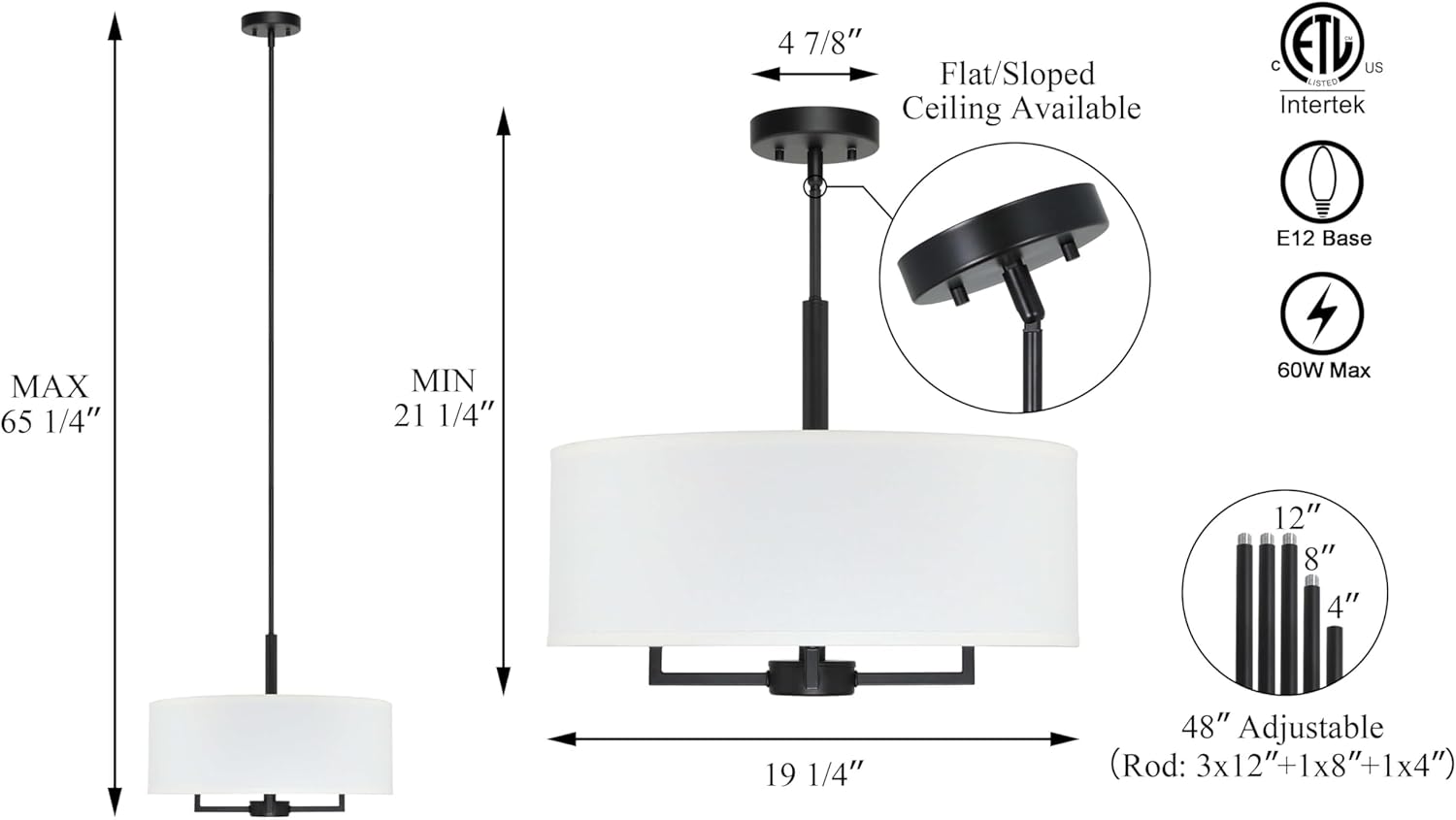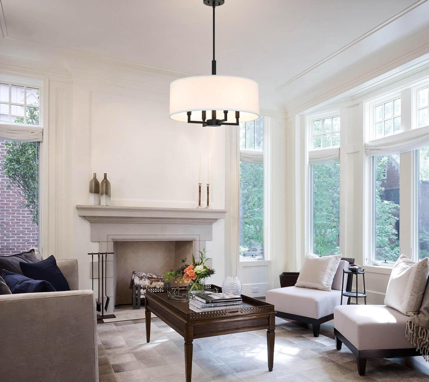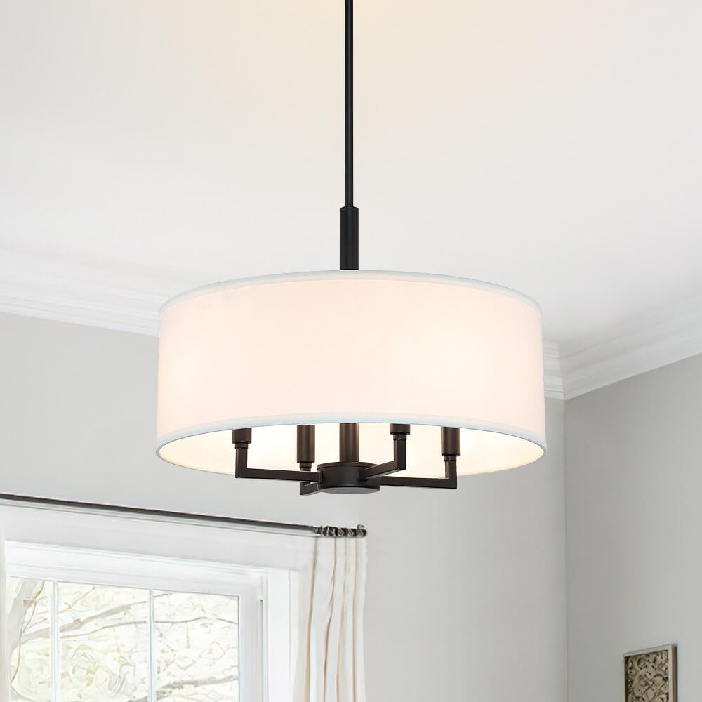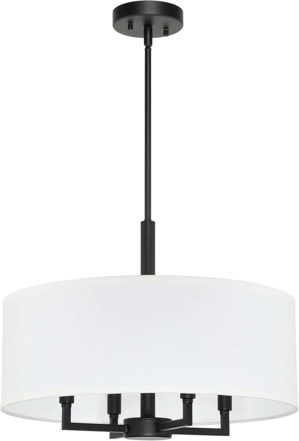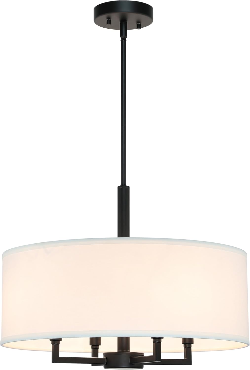 XiNBEi Lighting Drum Chandelier, Farmhouse 4 Light Pendant Light with White Fabr