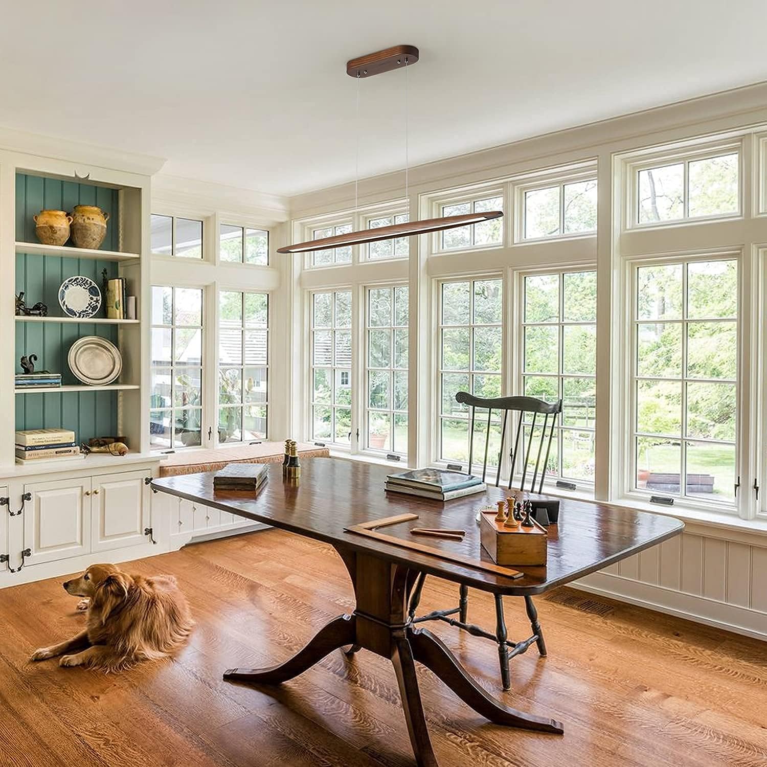 YISDESIGN 39" Wood Linear Pendant Light LED Dimmable Hanging Light Dinning Room